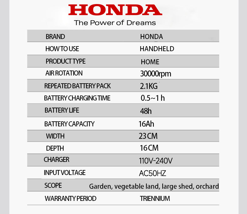Honda, cuyo nombre completo es "Honda Giken Industrial Co., Ltd.", tiene su sede en Tokio, Japón. Fundada en 1948 por el fundador Soichiro Honda. La marca Honda goza de una reputación mundial. Las cortadoras de césped que vendemos ahora son los últimos desarrollos de Honda y cada cortadora de césped vendida ha sido probada decenas de miles de veces. Puedes usarlo con confianza